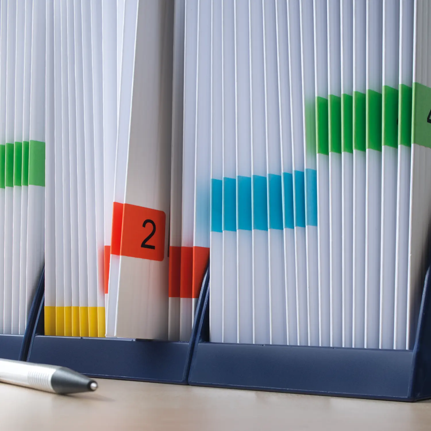- Las etiquetas de color proporcionan orden y claridad, ideales también para destacar información importante
