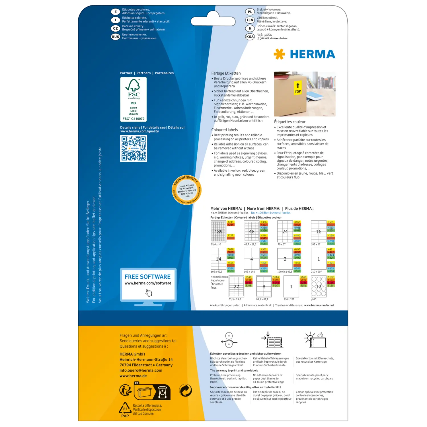 - Para avisos sobre documentos, muestras y documentos de expedición, como pegatina de promoción, para marcajes en el al macén y lalogística, para codificaciones de color