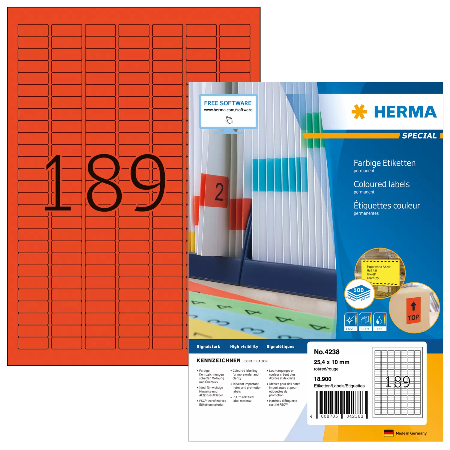 Etiquetas de color, A4, 25,4 x 10 mm, rojo, adherencia permanente