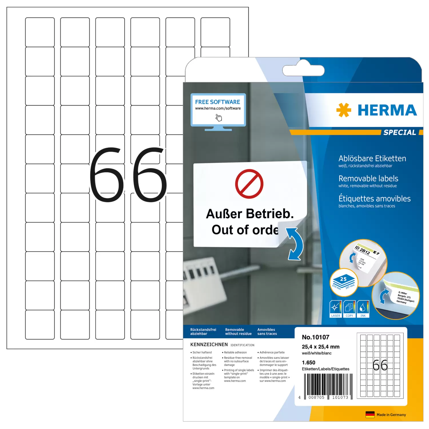 Etiquetas despegables, A4, 25,4 x 25,4 mm, blancas