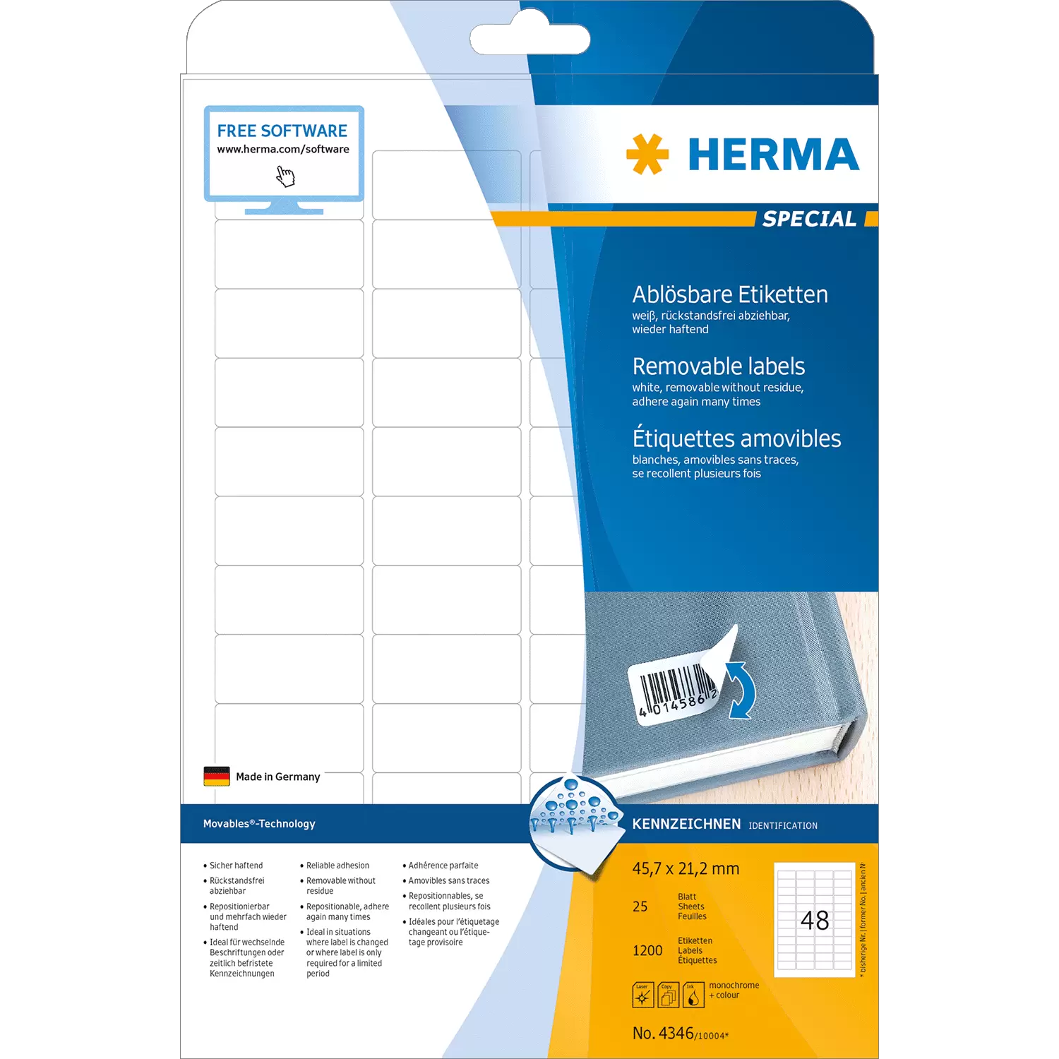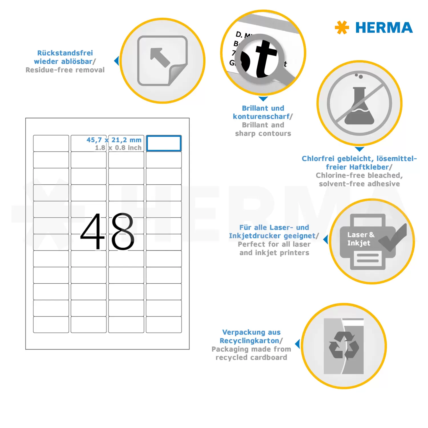 Etiquetas despegables, A4, 45,7 x 21,2 mm, blancas