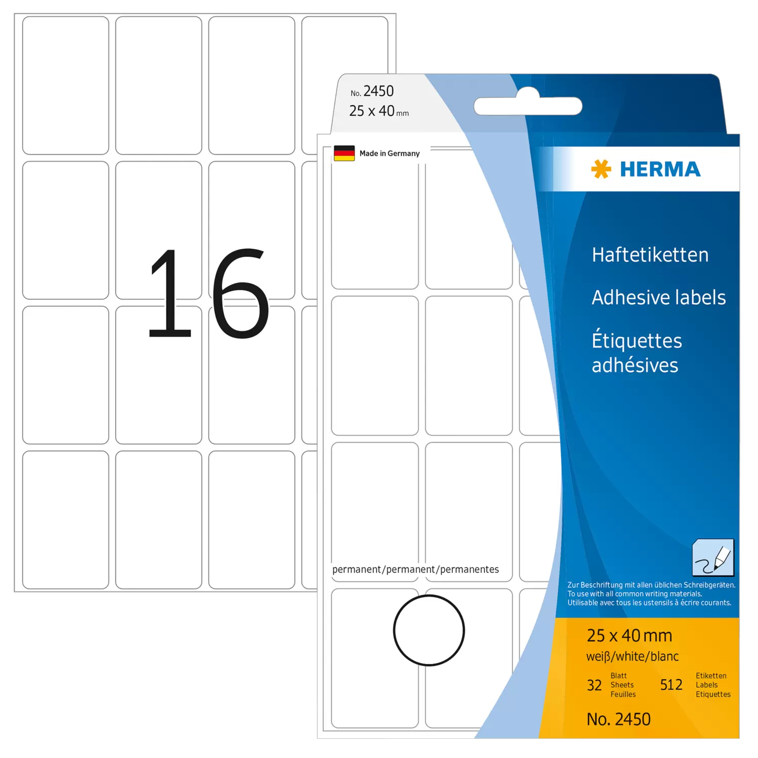 Etiquetas de uso múltiple, 25 x 40 mm, blancas, adherencia permanente, para la rotulación a mano