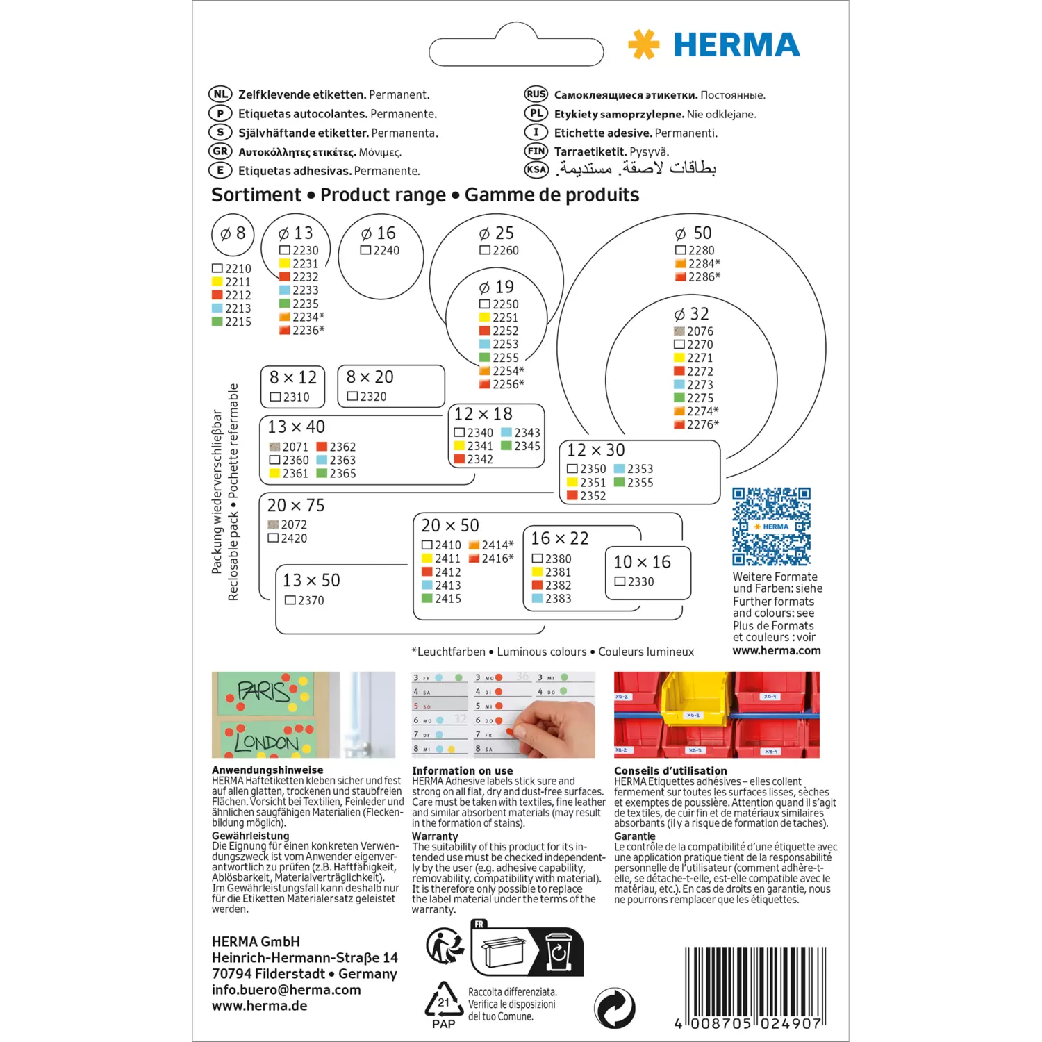 - Etiquetas adhesivas de uso múltiple, pueden rotularse con todos los aparatos de escritura de uso habitual, no adecu adas para laimpresión con el ordenador