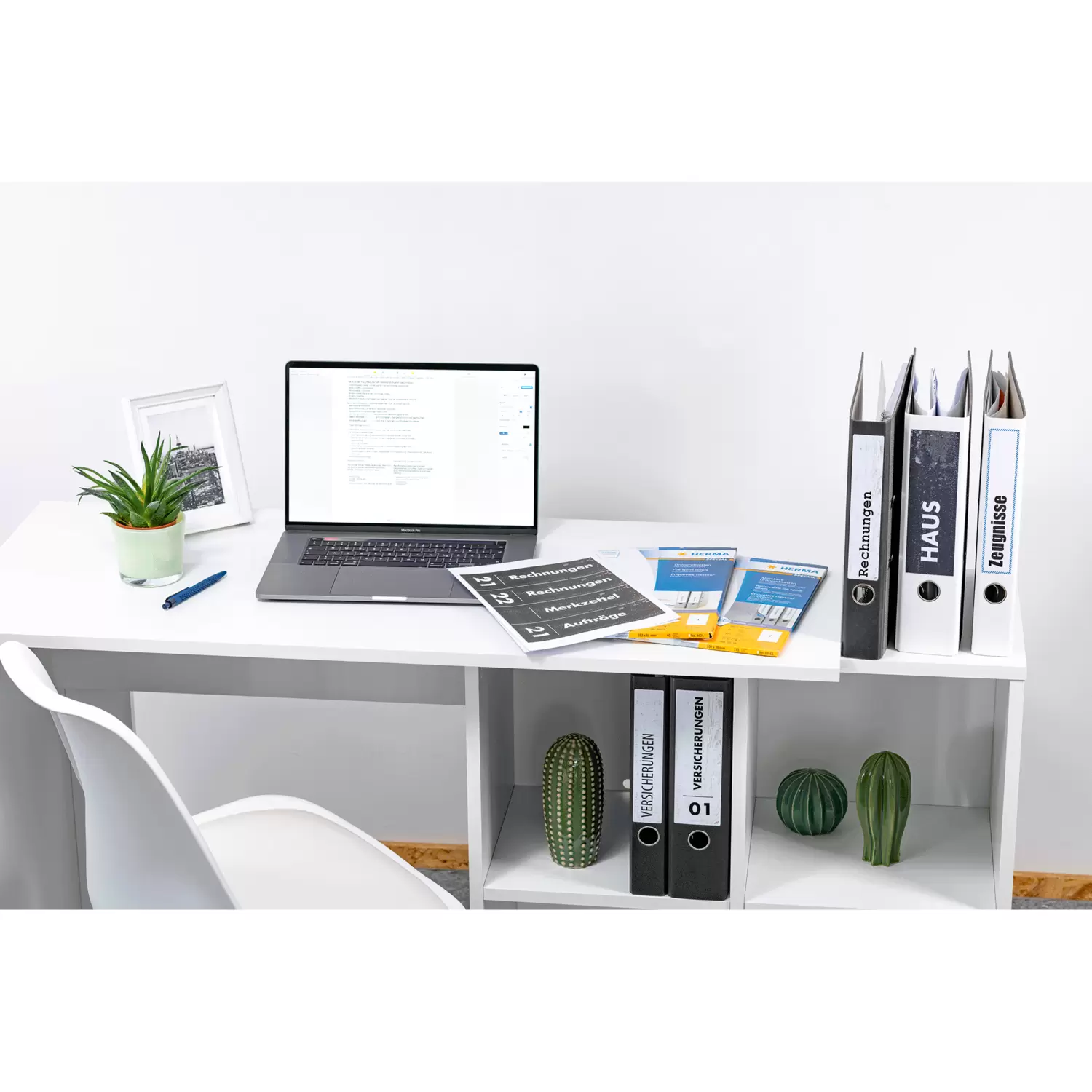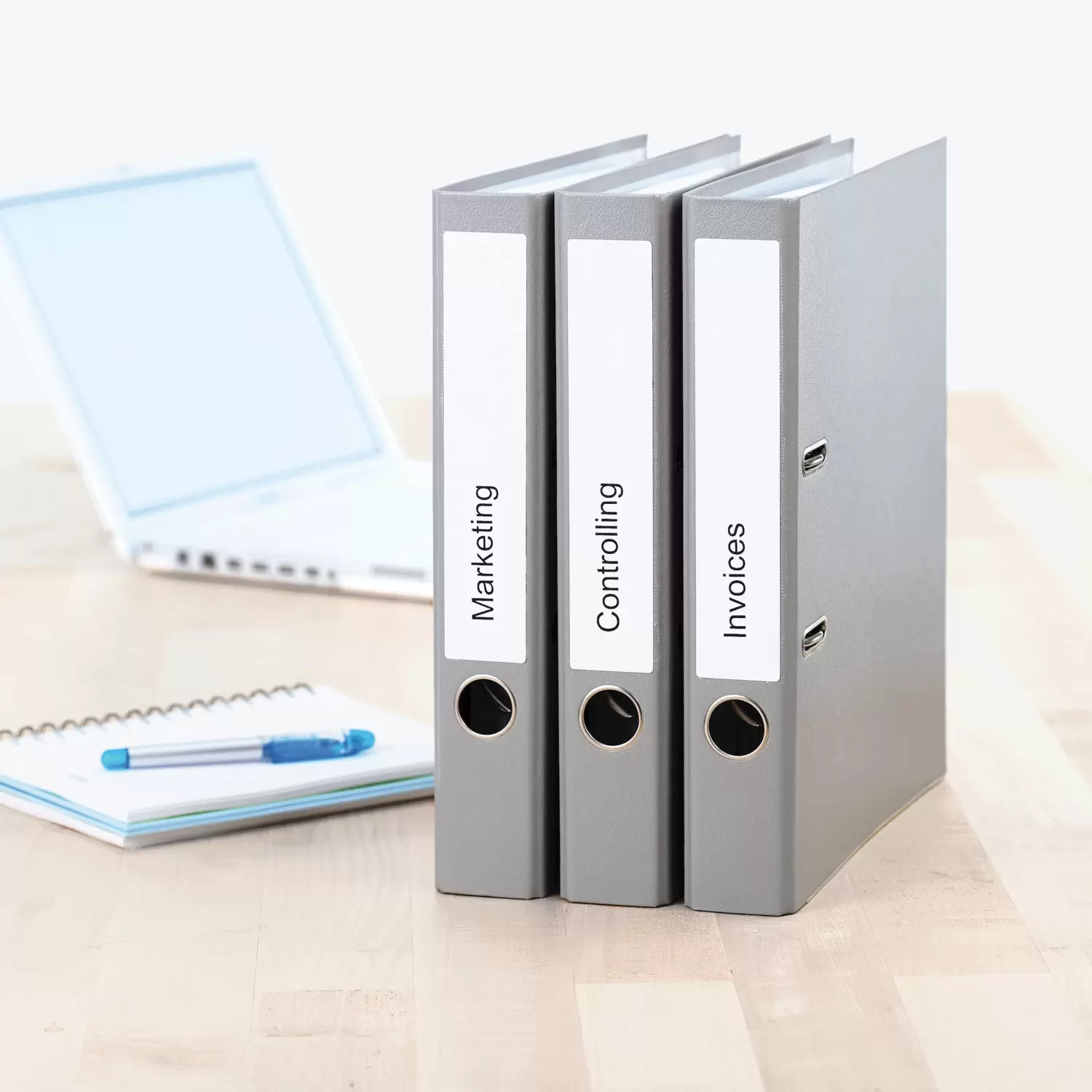 - Las etiquetas para lomo de archivador se adhieren con seguridad, también en caso de utilización frecuente