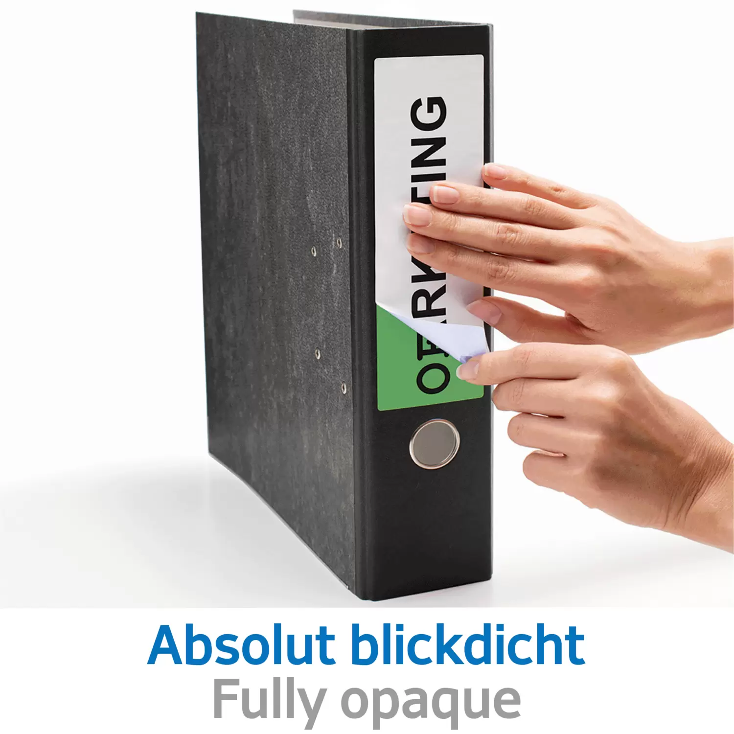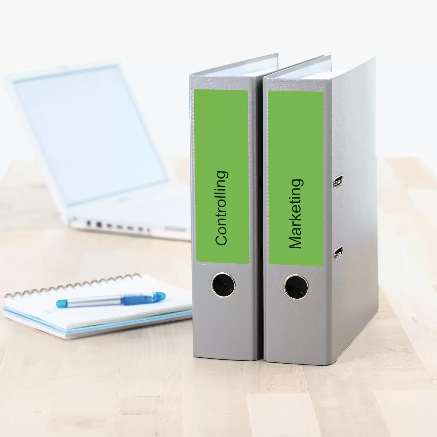 - Las etiquetas para lomo de archivador se adhieren con seguridad, también en caso de utilización frecuente