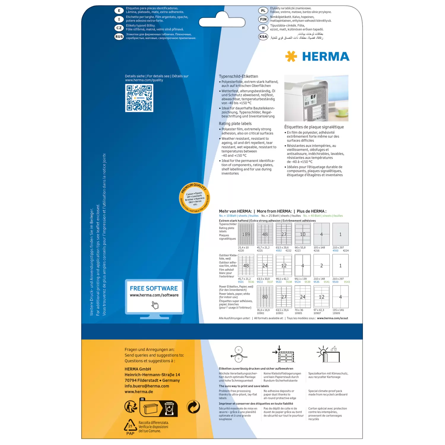 - Para la identificación permanente de inventario, propiedad y componentes, extremadamente duraderas, resistentes al envejecim iento, la temperatura, la radiación UV