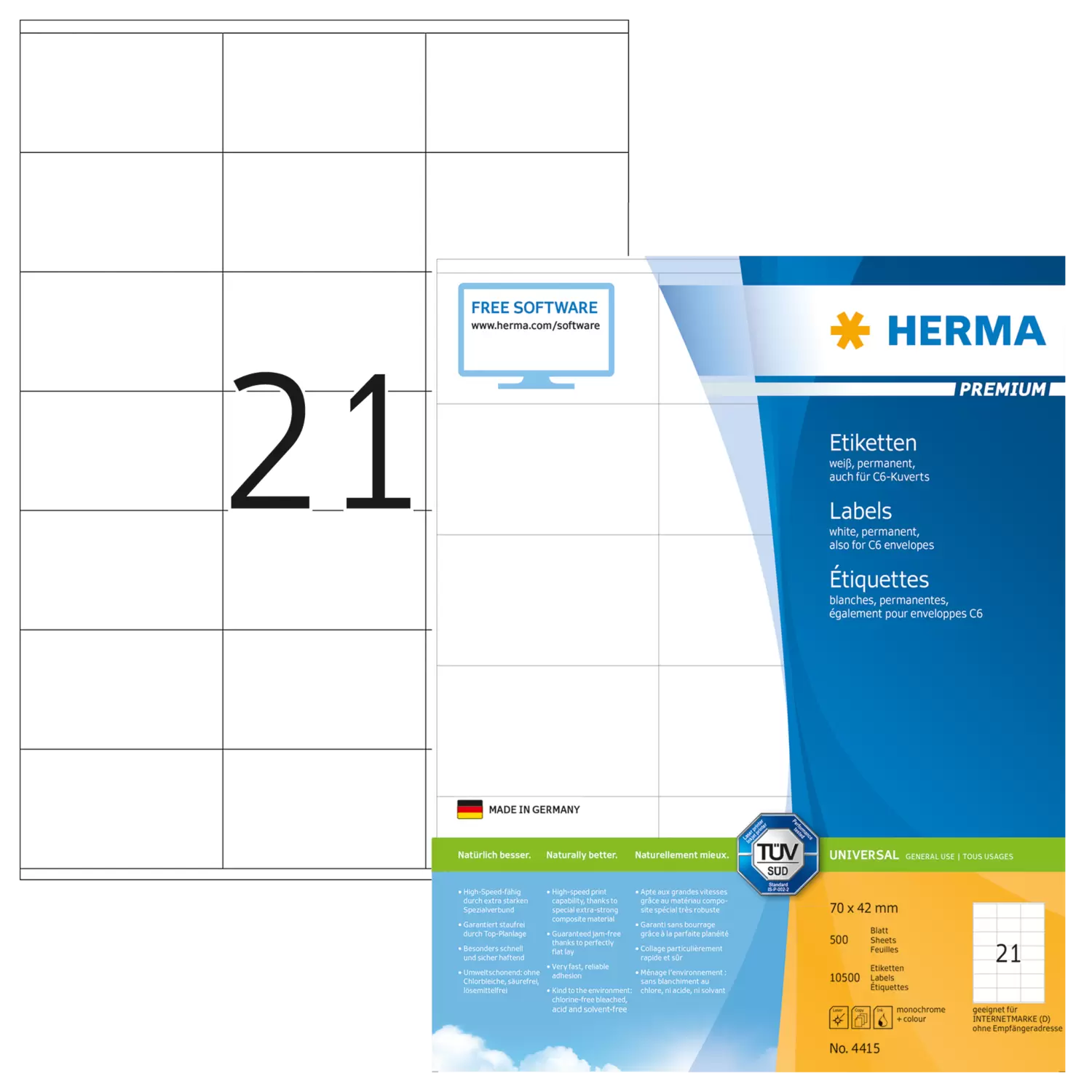 Contenido: 10500 etiquetas / 500 hojas